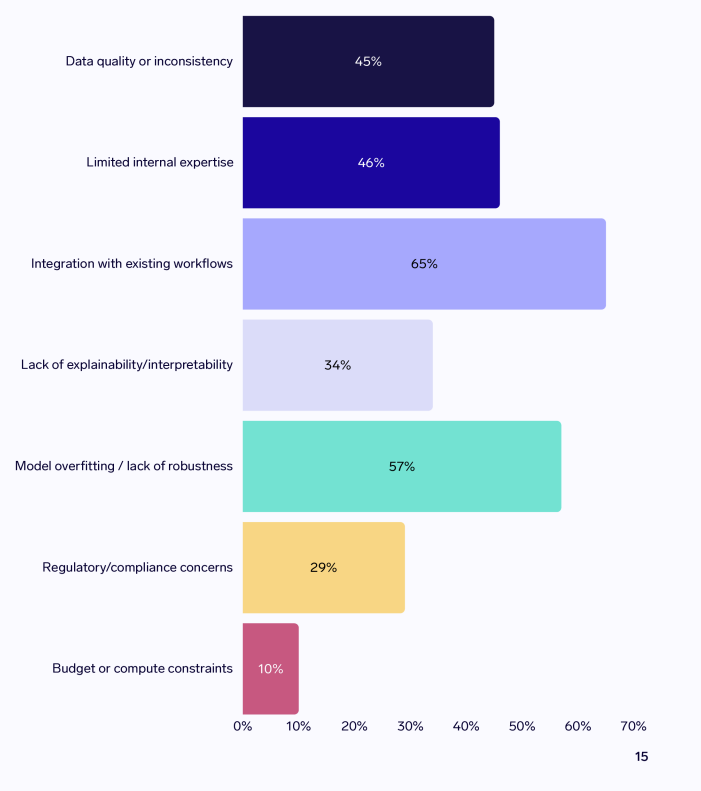 Challenges: The most common challenge highlighted by portfolio managers and analysts is integrating Al into existing workflows, with 65% highlighting this.